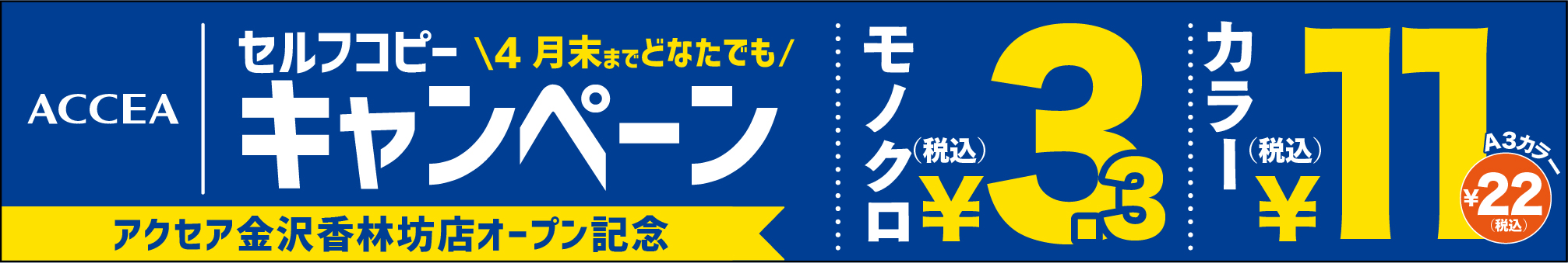 ・セルフカラーコピーA3サイズ 22円/面(通常 33円)