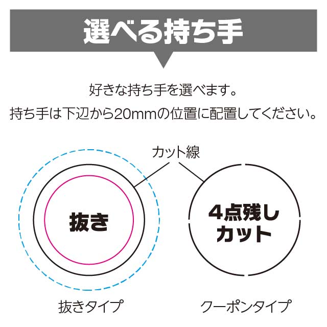 持ち手部分は抜きタイプとクーポンタイプの2種類。